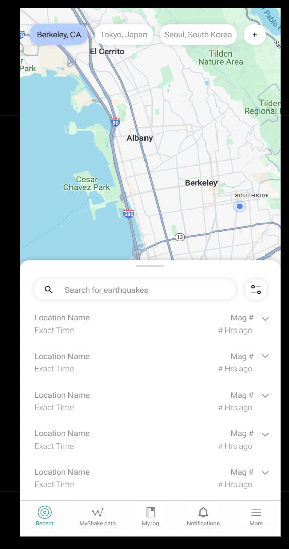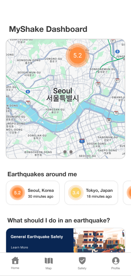 What if MyShake was more personalized and opened to a personalized dashboard instead of a map?