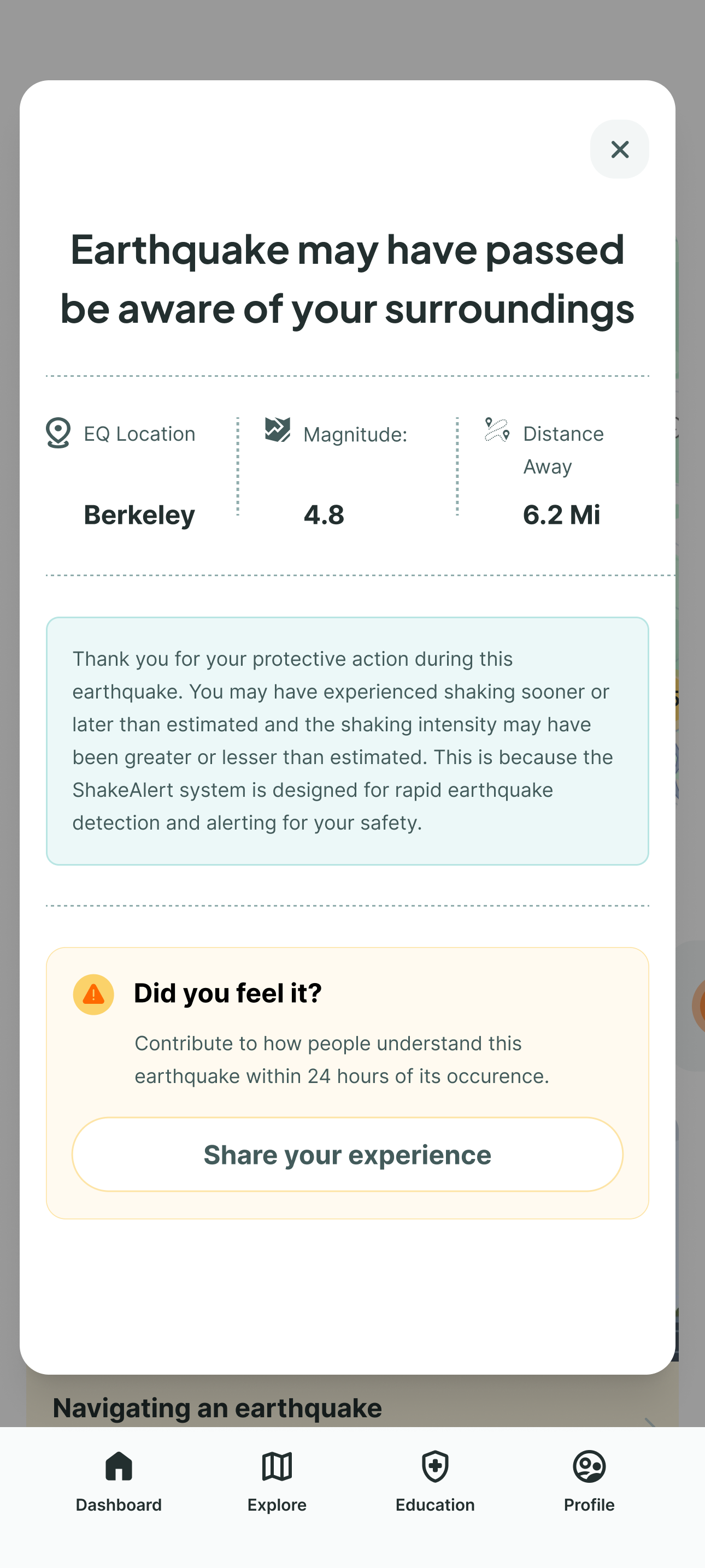 Built in partnership with USGS and UC Berkeley's Seismology Lab, MyShake delivers earthquake alerts seconds before shaking begins in California , Oregon and Washington. With 4.4 million users it provides alerts, post-quake reporting, and preparedness tools.