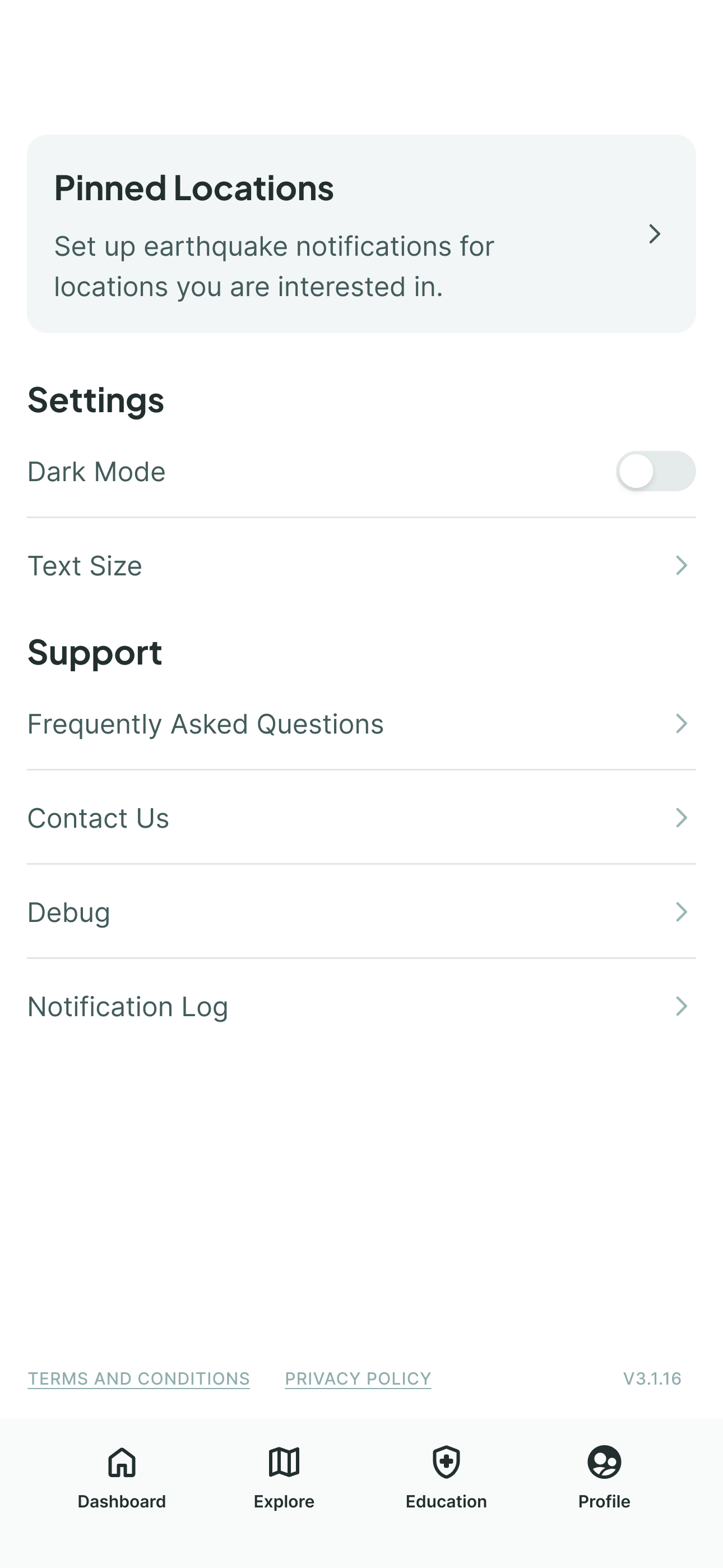 The profile page which used to be settings has been simplified making critical actions like enabling earthquake warnings more accessible. I believed making it a profile section was on brand for the feeling I wanted to give users , I wanted this app to feel personal