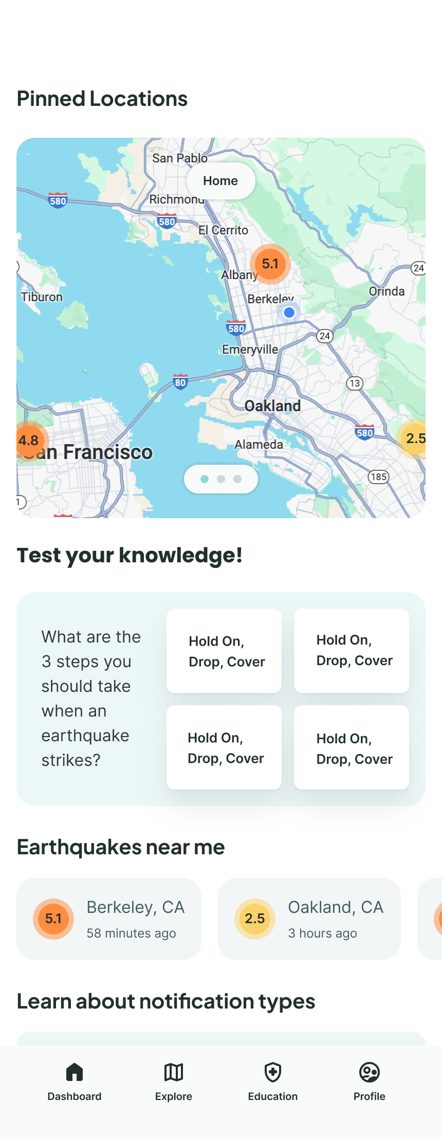 There’s only 1 access point to setting up an early warning alert or custom earthquake notification and 5 steps for both — far too complex for a safety app.