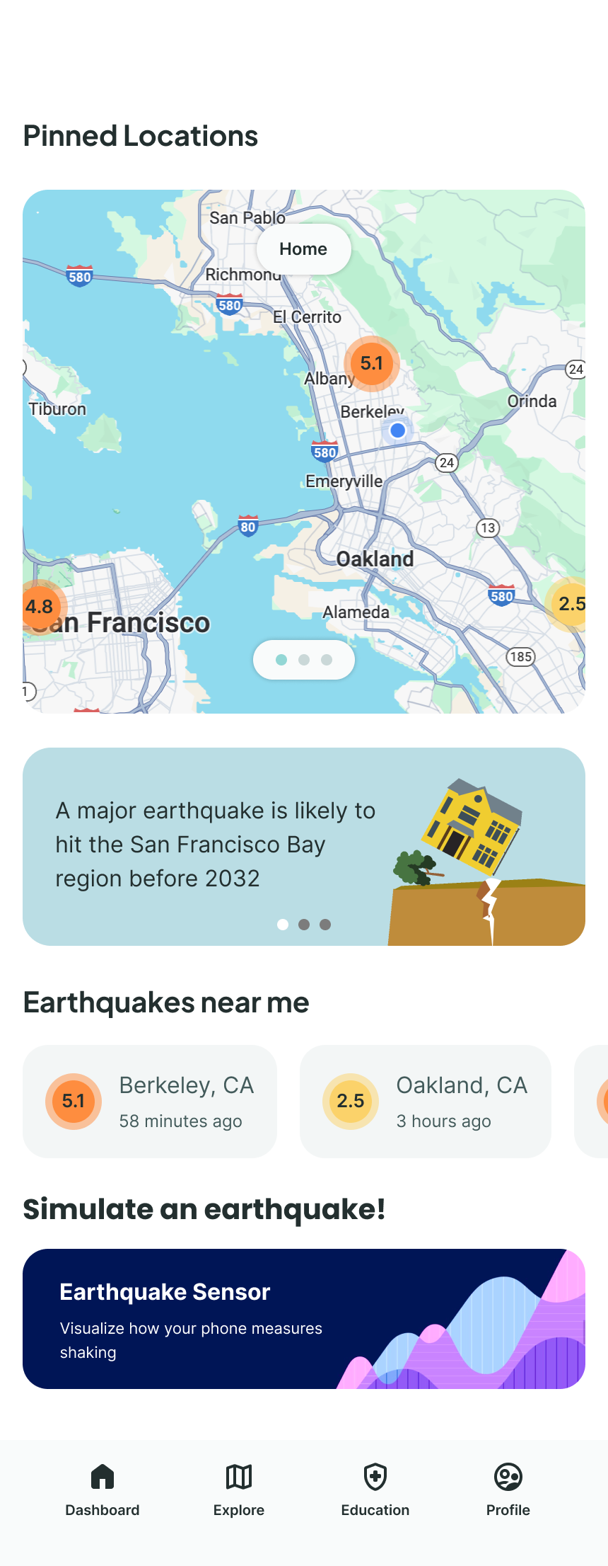 Built in partnership with USGS and UC Berkeley's Seismology Lab, MyShake delivers earthquake alerts seconds before shaking begins to 3 million users. It provides alerts, post-quake reporting, and preparedness tools.
